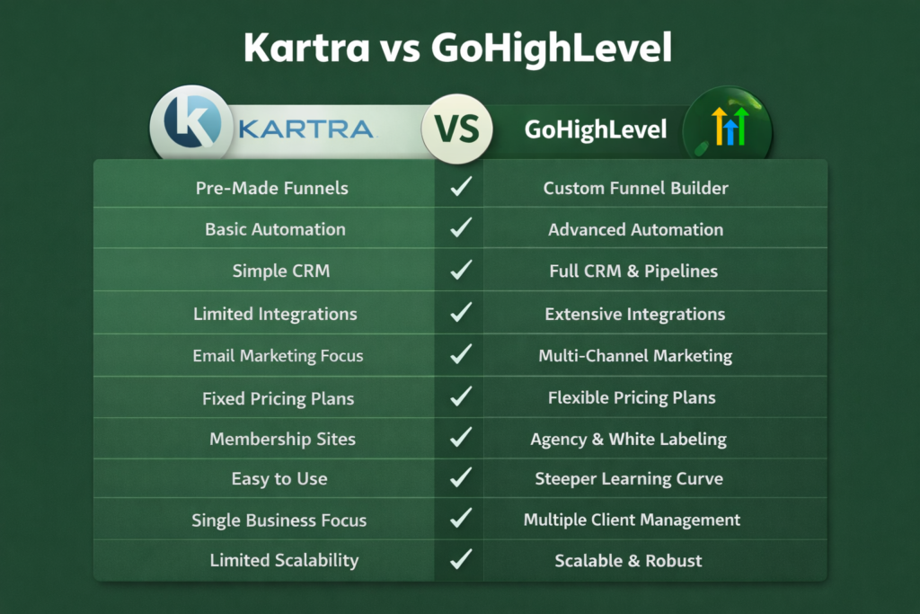Kartra vs GoHighLevel: A Complete Comparison for Funnels, Automation, CRM, and Growth